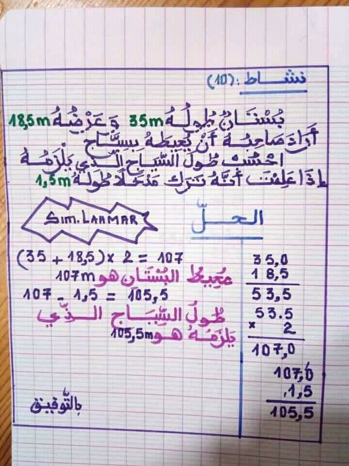 الرياضيات السادسة إبتدائي المسألة تمرين 4