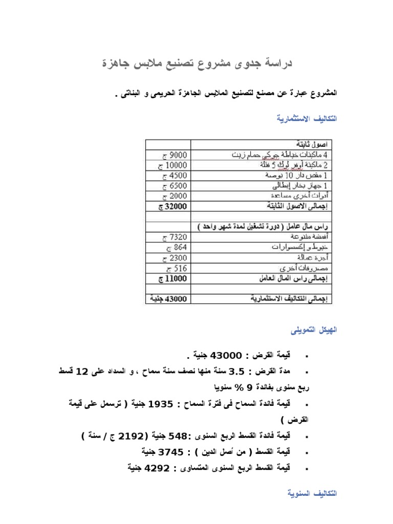 دراسة جدوى مشروع تصنيع ملابس جاهزة
