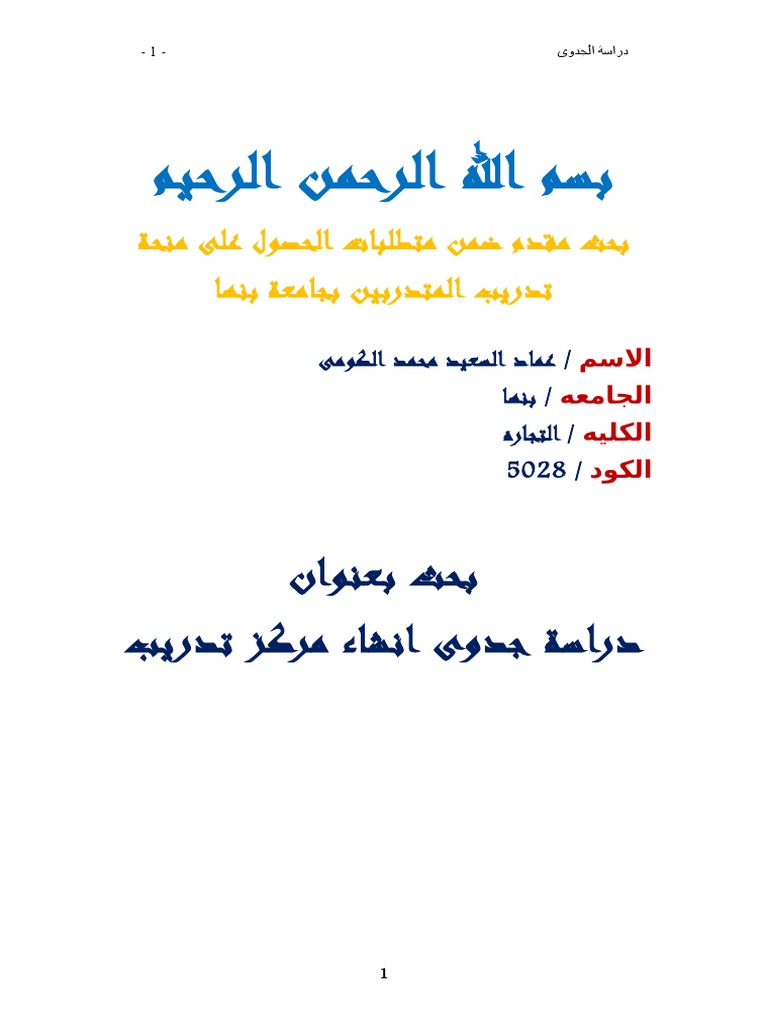 دراسة جدوى انشاء مركز تدريب