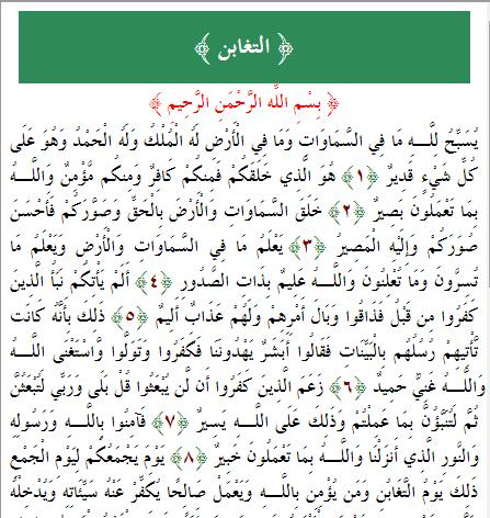 سورة التغابن سورة التغابن مكتوبة قراءة سورة التغابن كاملة