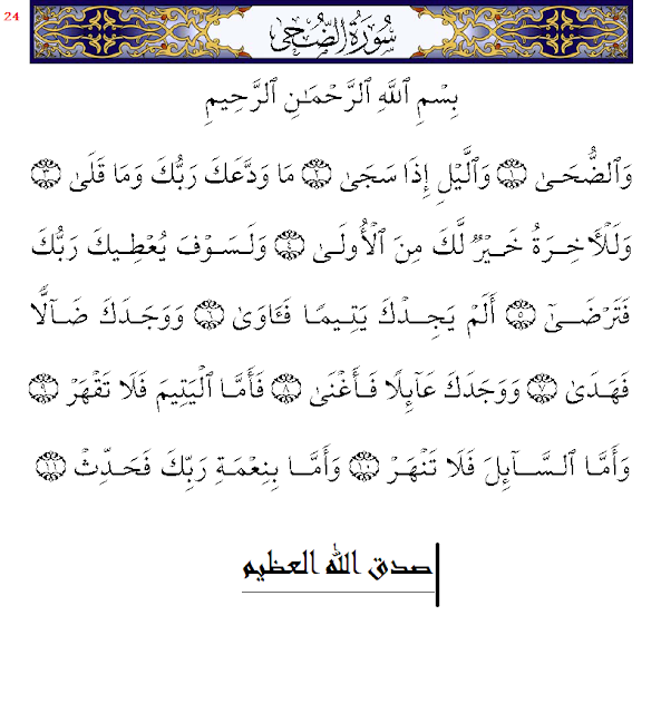 سورة الضحى Pdf مكتوبة بالتشكيل سورة الضحى كاملة بالرسم العثماني المصطبة