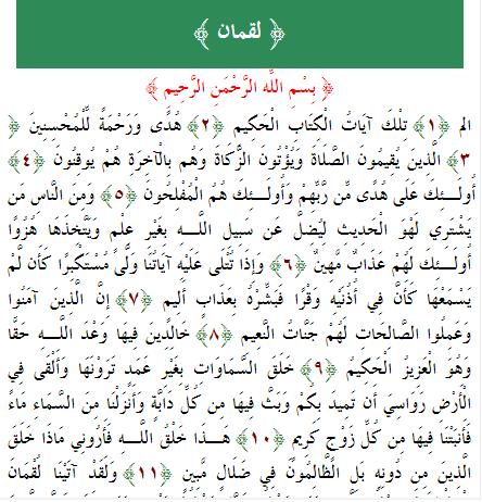 مقتطفات دينية سورة لقمان كاملة مكتوبة
